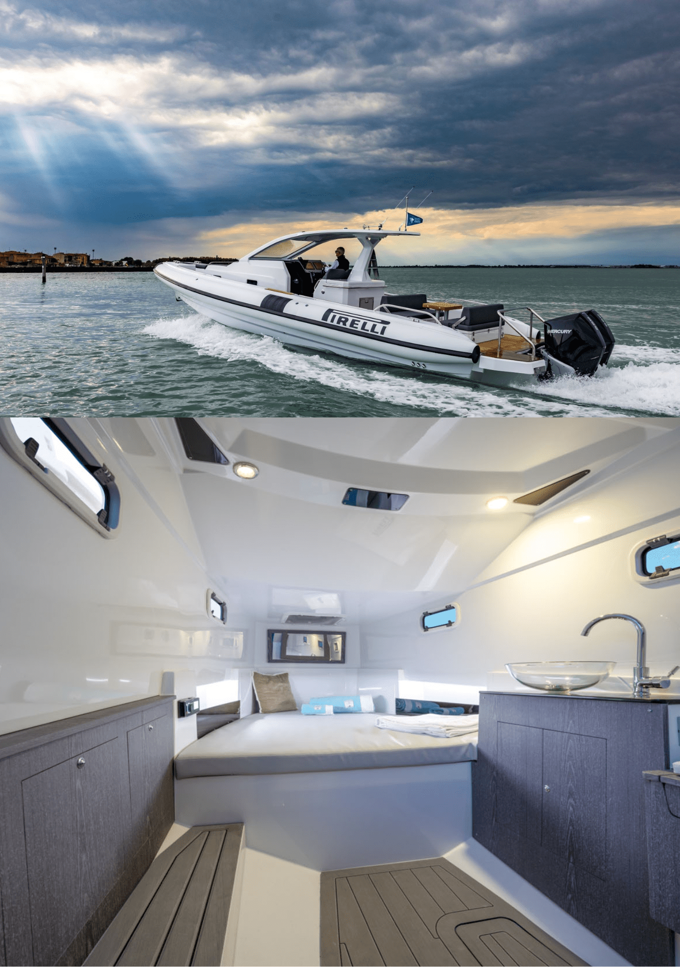 Gli interni eleganti e funzionali completano l’esperienza luxury, offrendo spazi ben organizzati e rifiniti con materiali di alta qualità. Ogni dettaglio è studiato per assicurare un lusso discreto e un elevato livello di comfort, trasformando ogni uscita in mare in un’esperienza esclusiva. Il PIRELLI 35 è la scelta ideale per chi cerca un noleggio gommone luxury in Sicilia capace di combinare design iconico, prestazioni elevate e relax assoluto, sia per escursioni giornaliere private sia per occasioni speciali come tour al tramonto, giornate VIP o eventi esclusivi in mare.